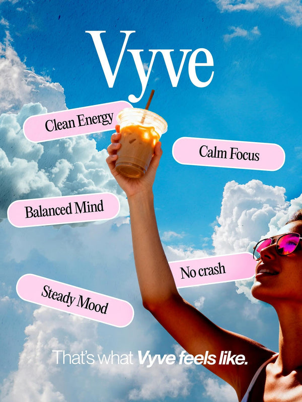 Vyve was made to taste as good as it feels. Smooth, satisfying, and easy to sip. We use natural flavouring and gentle sweetness to keep things delicious, without any artificial weirdness. Think: brain fuel you’ll actually look forward to.