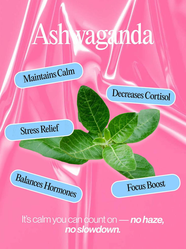 A clinically studied adaptogen that helps reduce cortisol, your main stress hormone. It supports emotional balance, stable energy, and a calmer nervous system (goodbye anxiety). The key to becoming less wired, and more you.